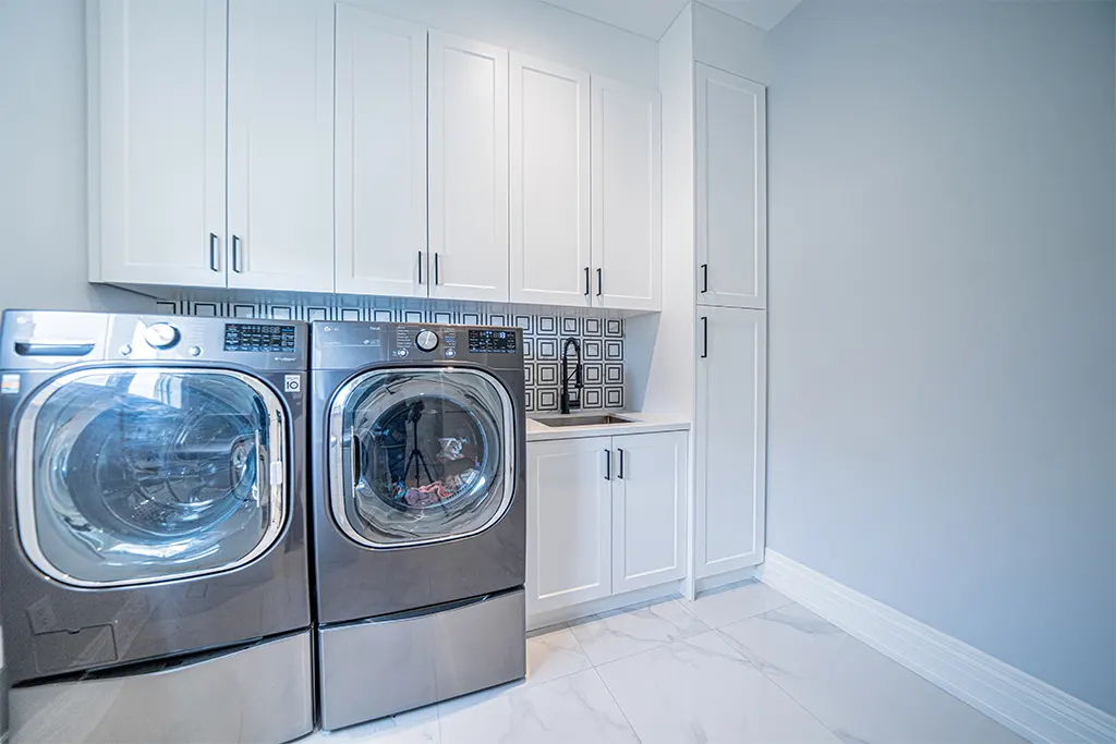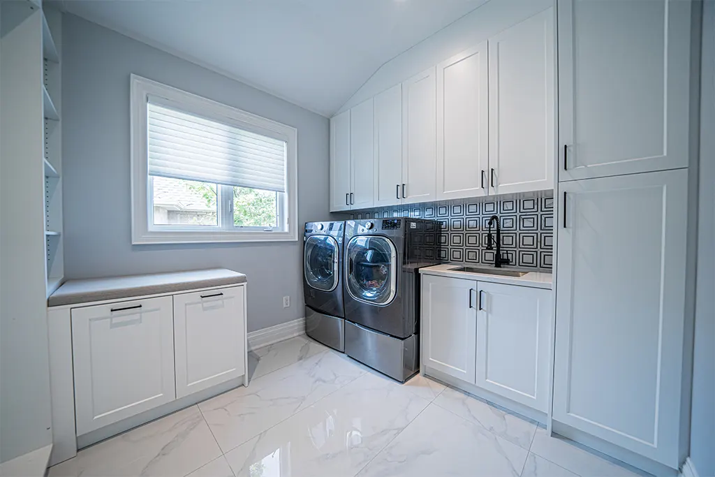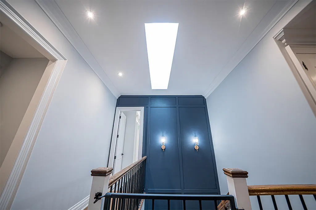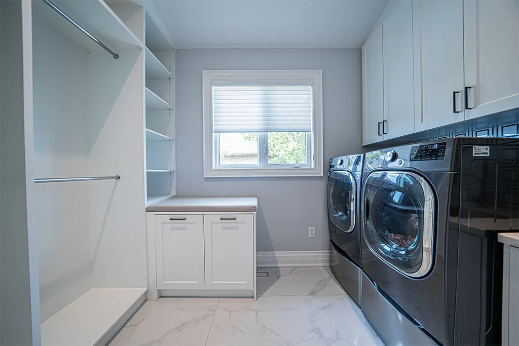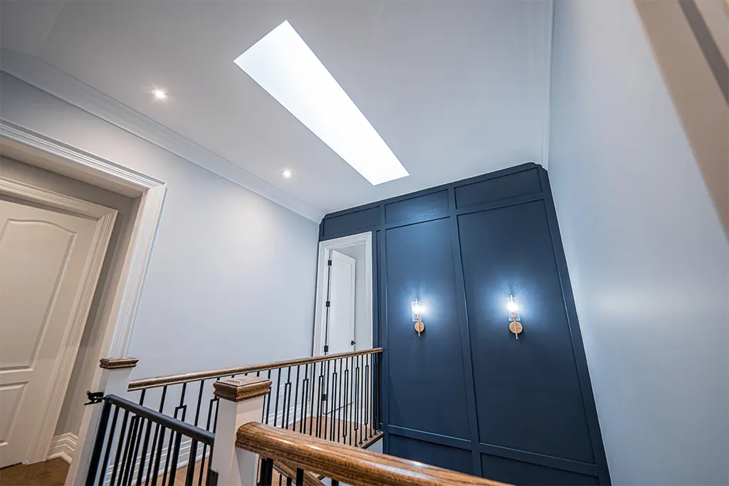 Relocation of Laundry Room New basement kitchen Skylight Feature Wall Stairs