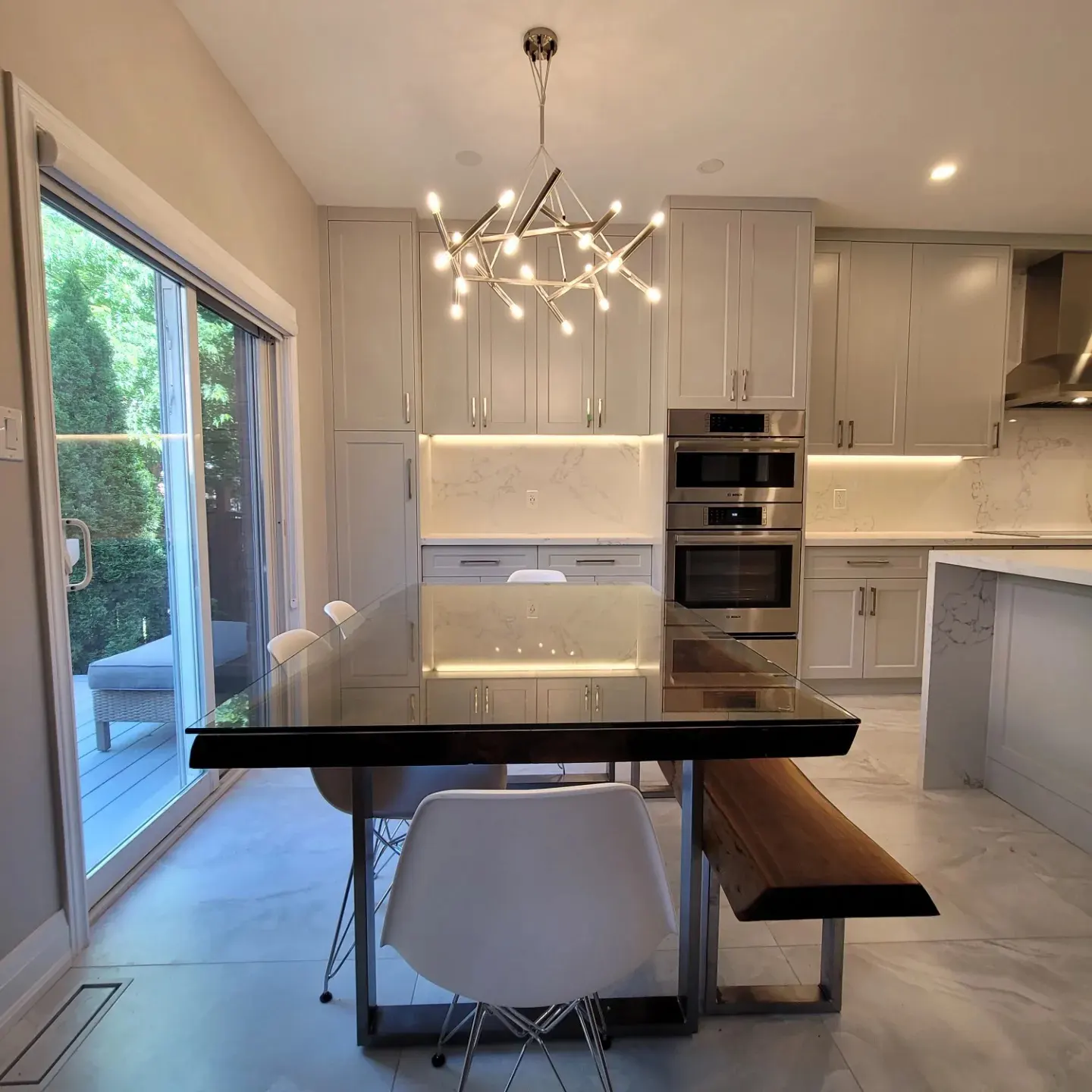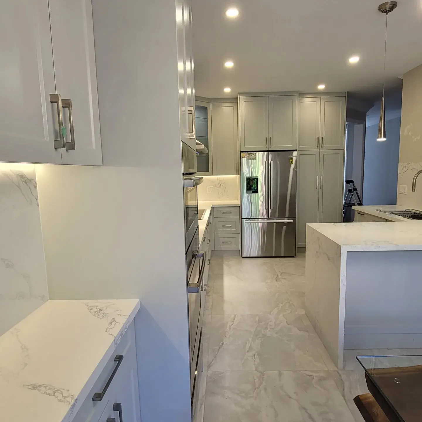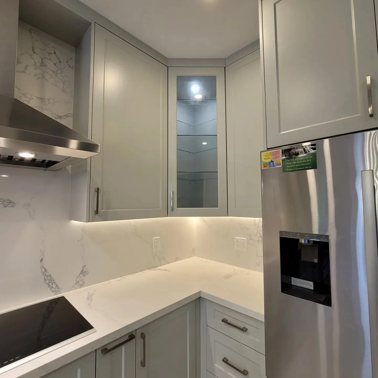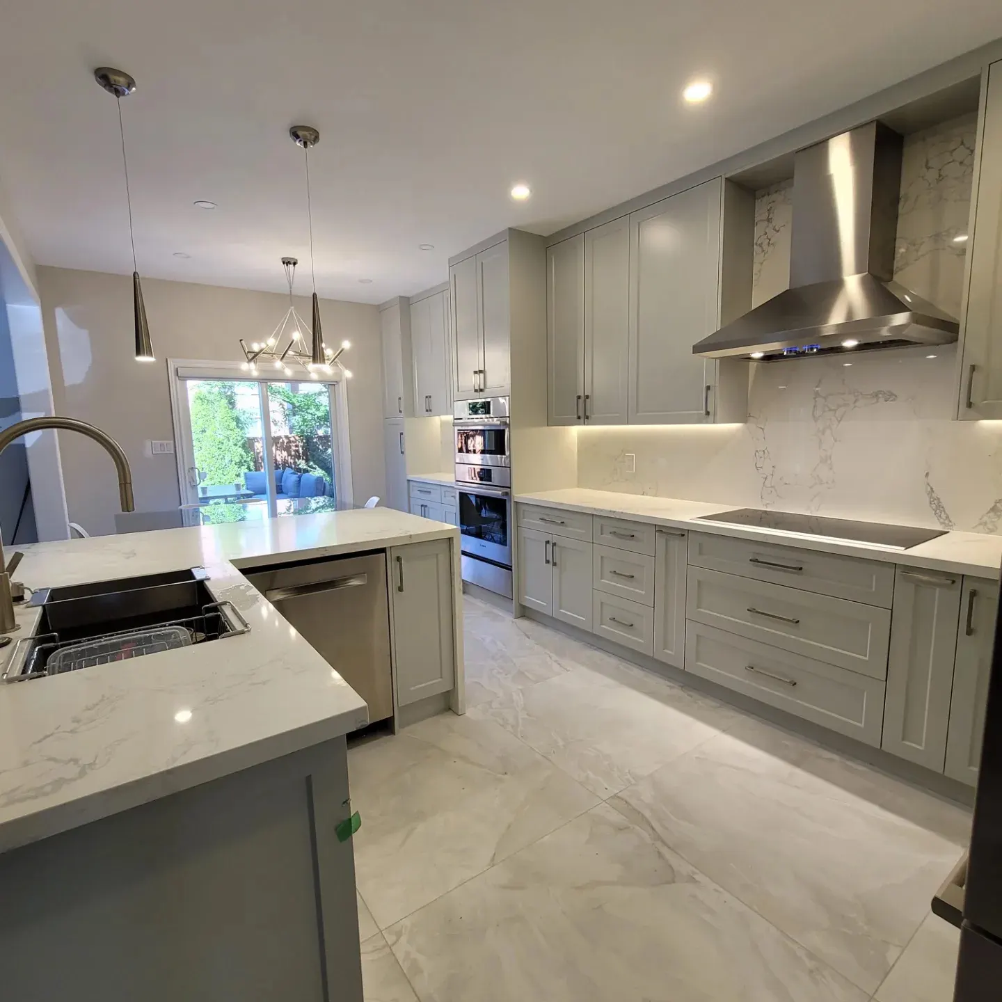 Complete Custom Kitchen Remodel Completed in 2 weeks! Custom Cabinetry, Quartz countertops, electrical, plumbing, tile, painting and accent lighting.