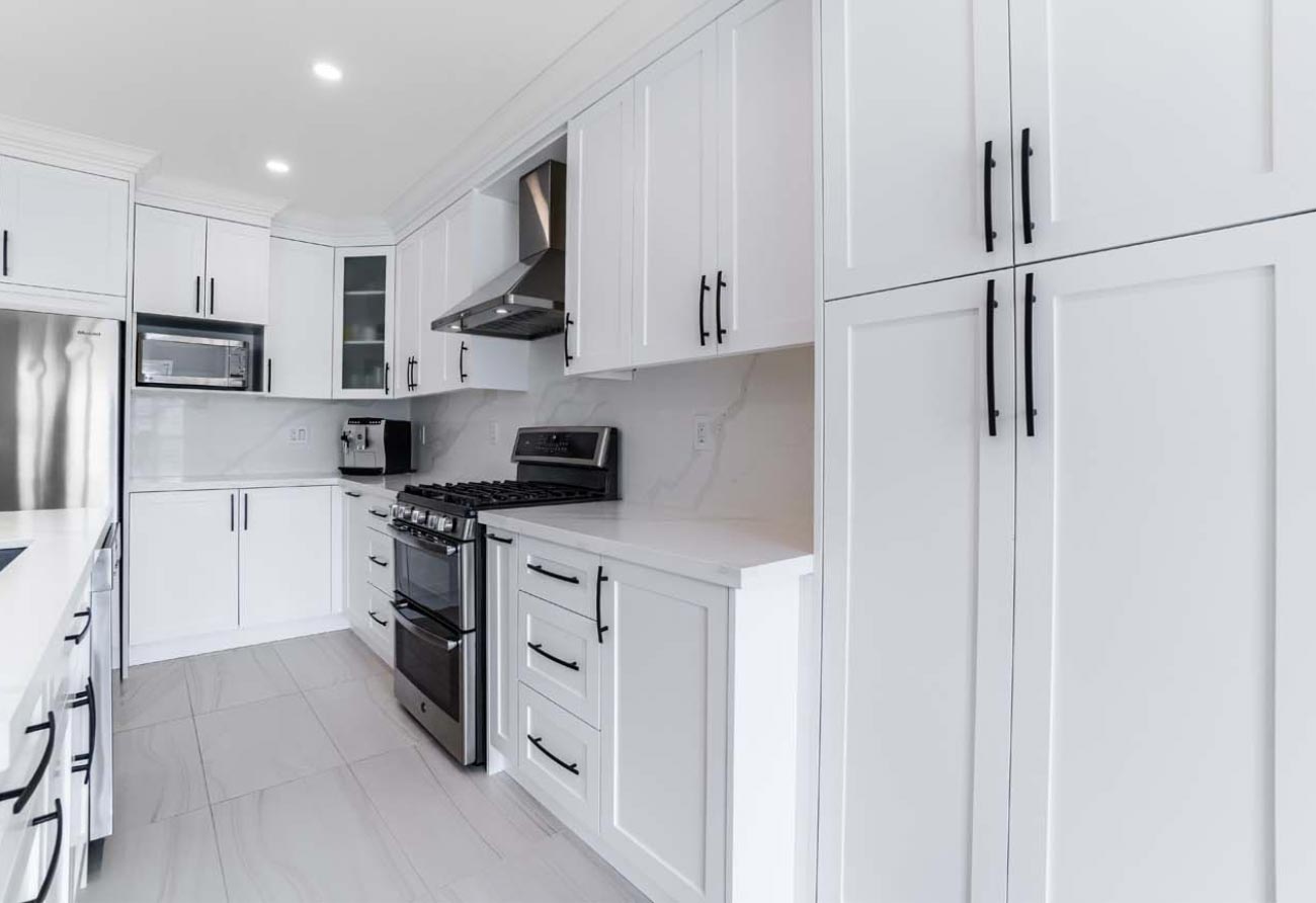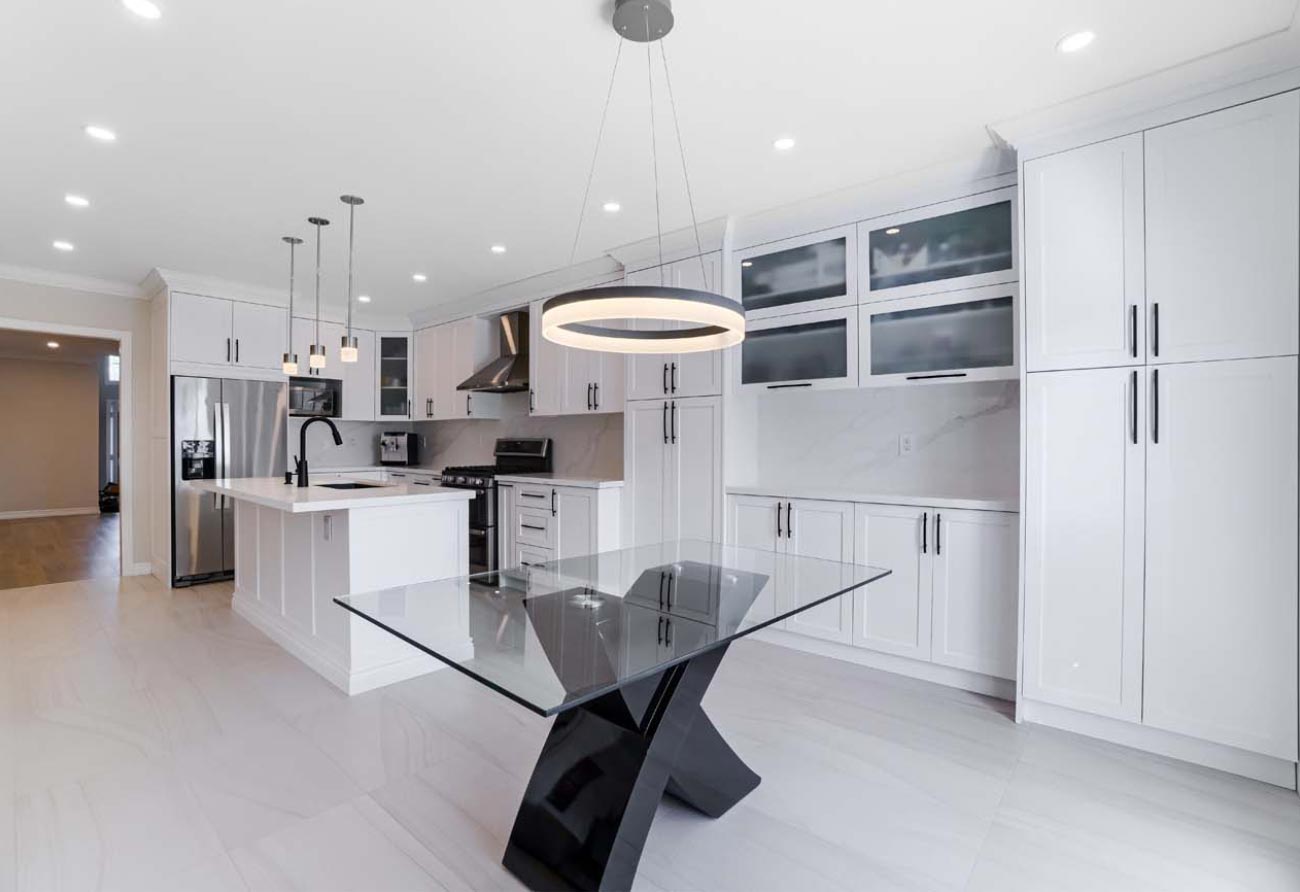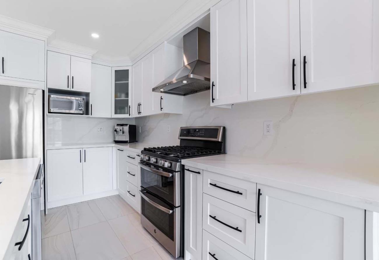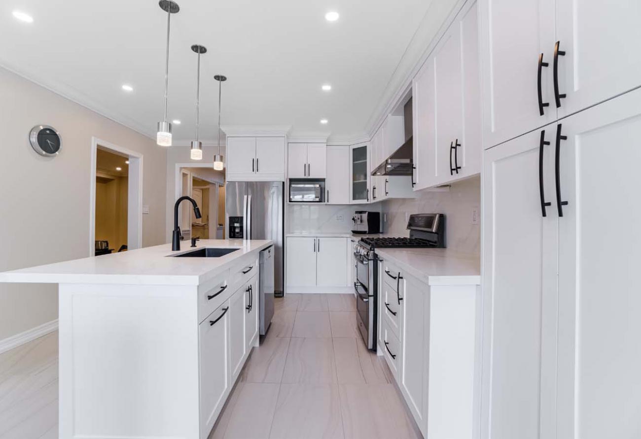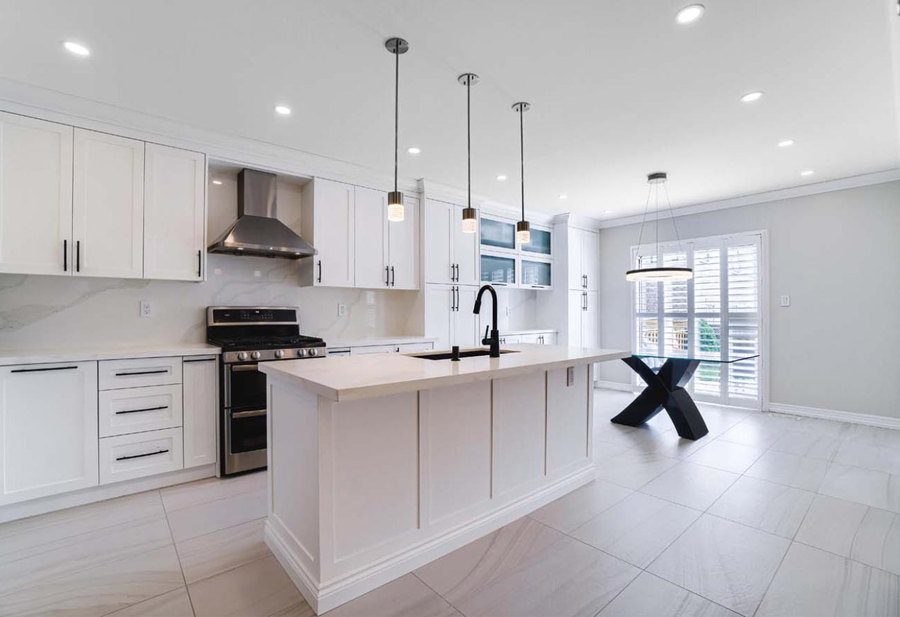 Kitchen Remodel, new hardwood flooring, new tiles, new staircase, and painting.