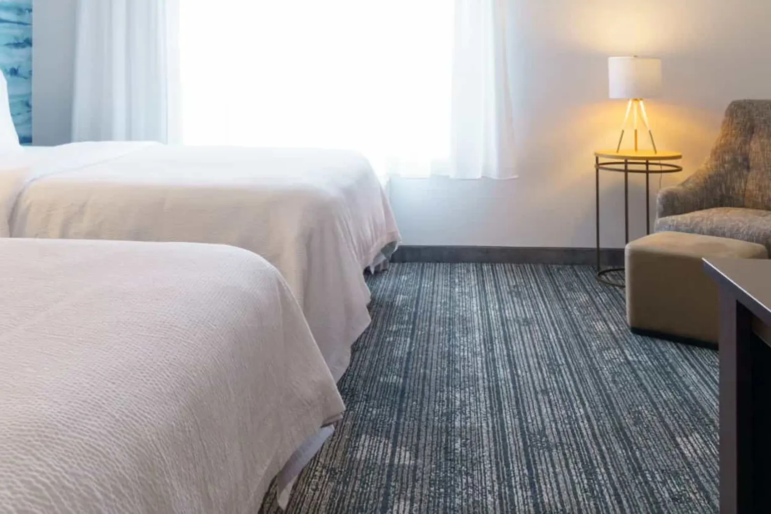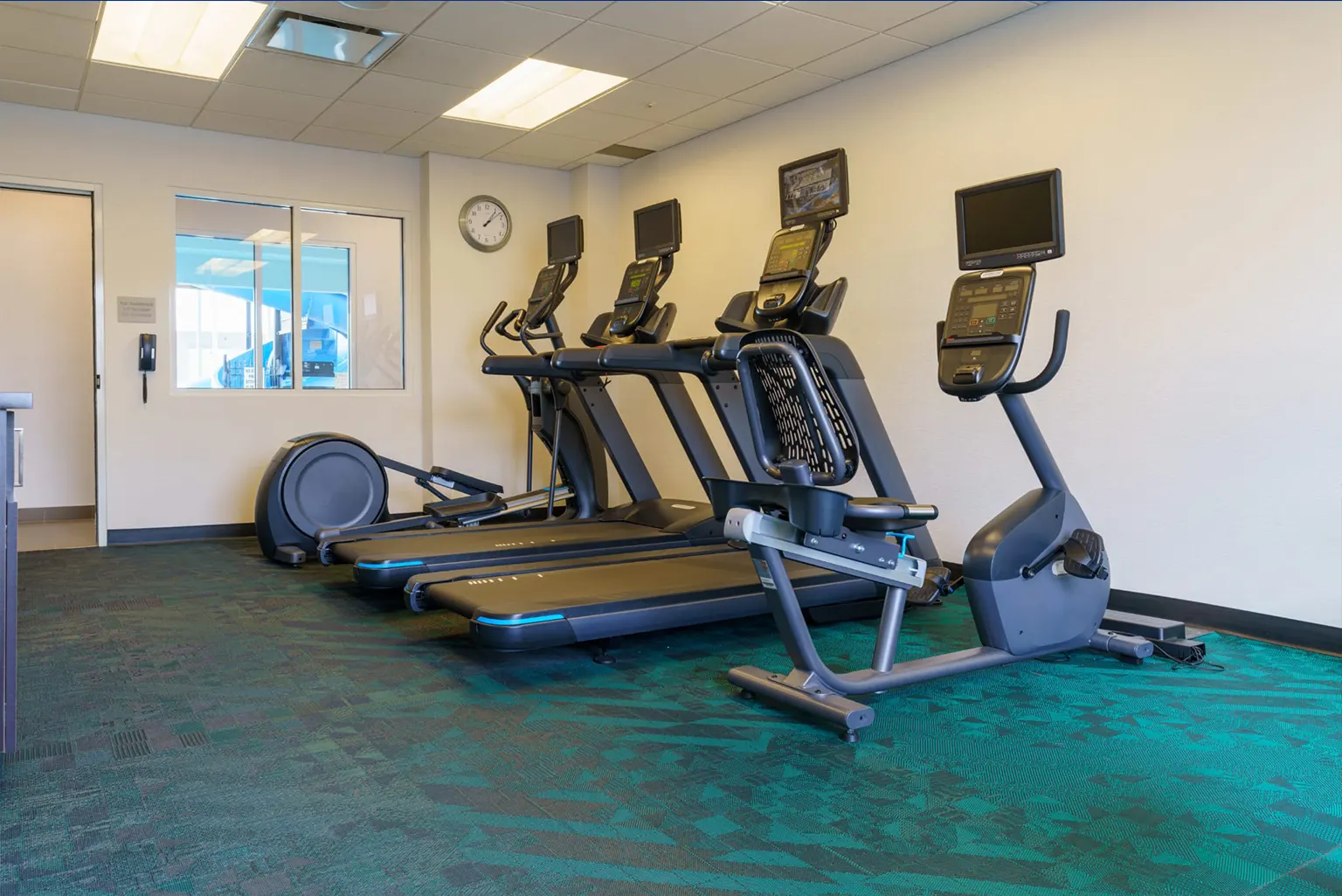 105 guest rooms, hallways, public areas, pool, lobby, fitness center, meeting rooms, back offices, restaurant, and the entire exterior.