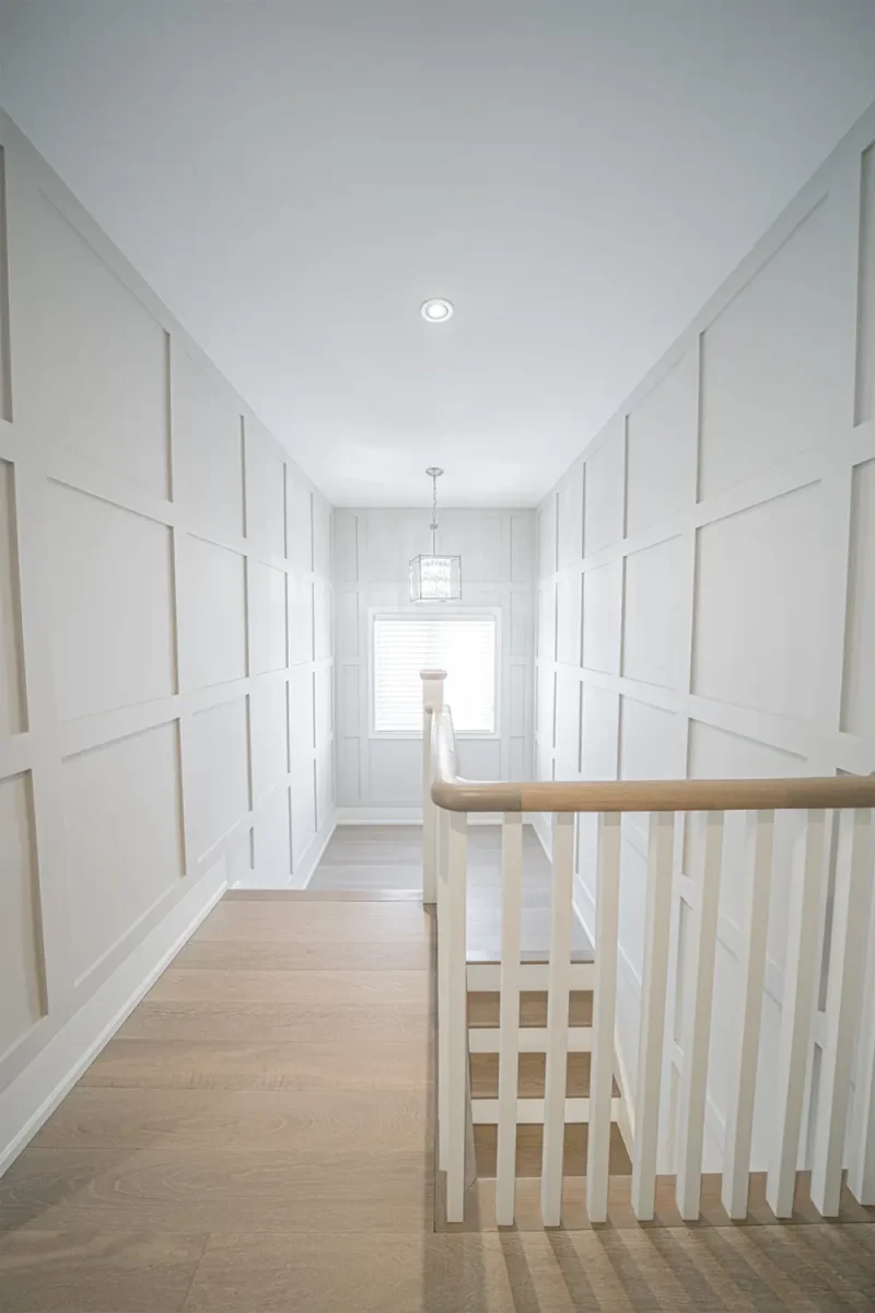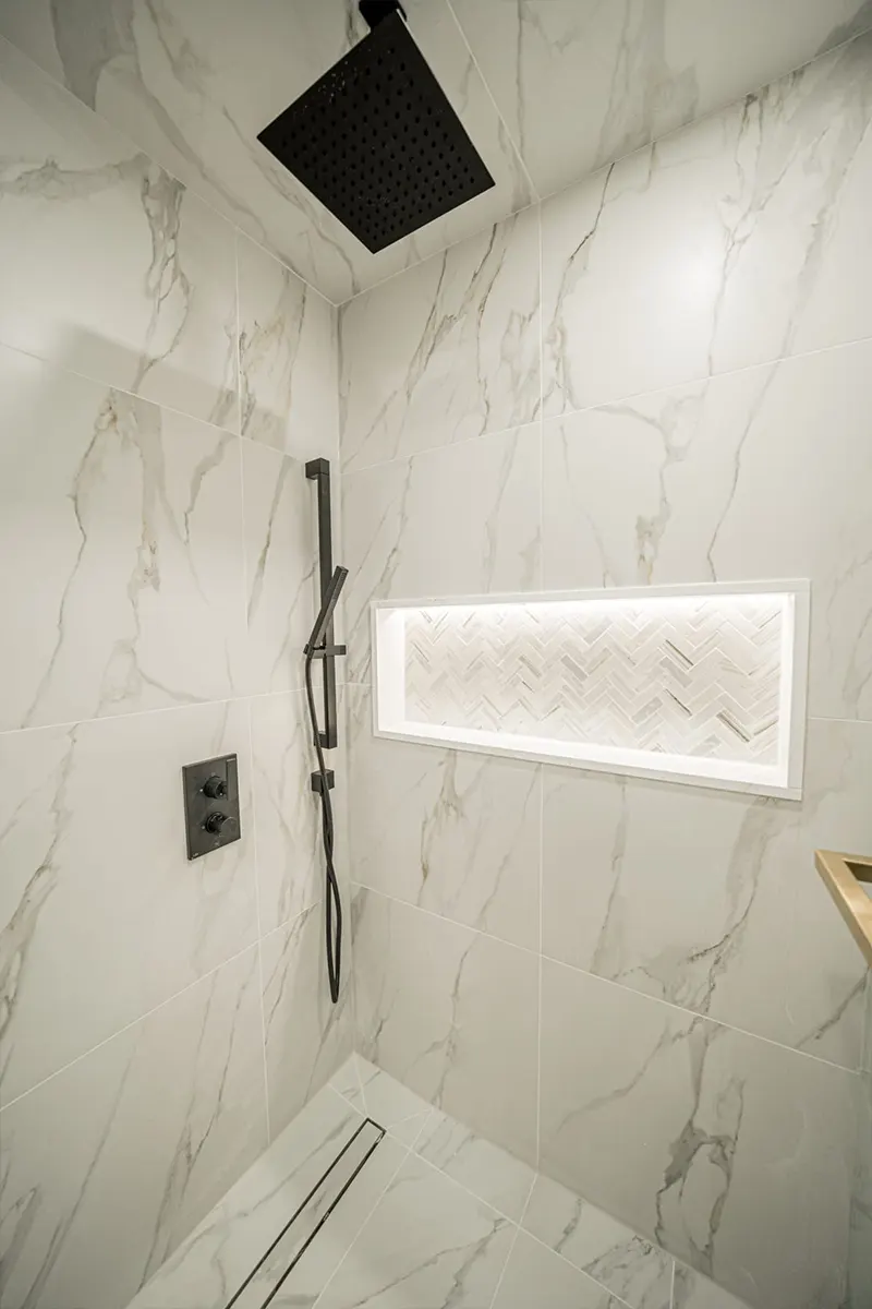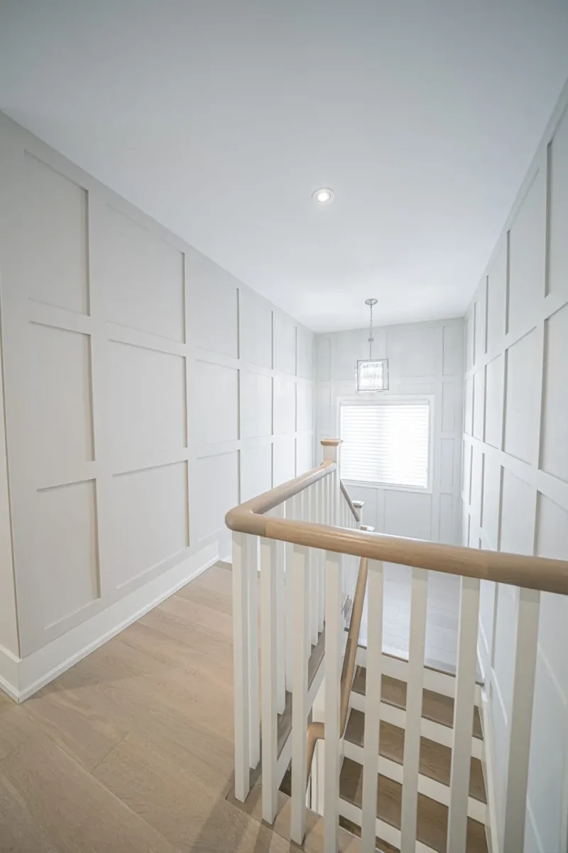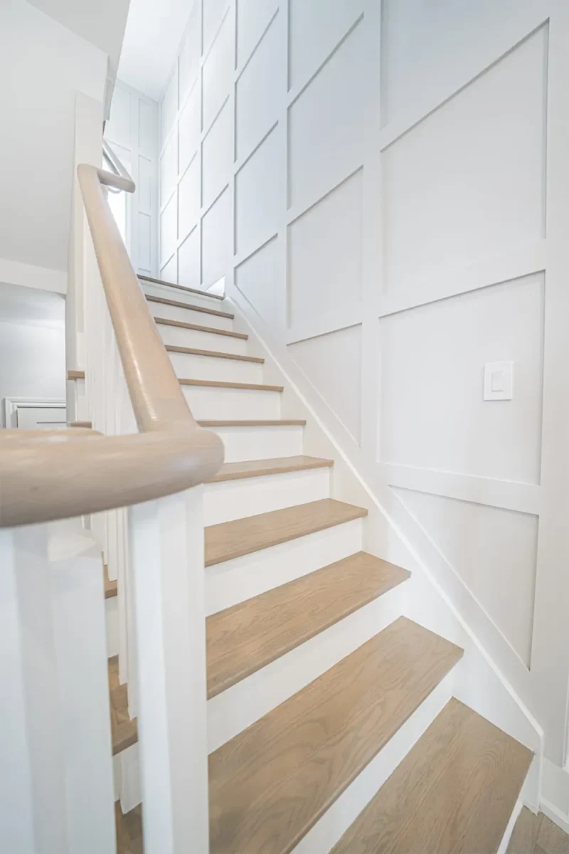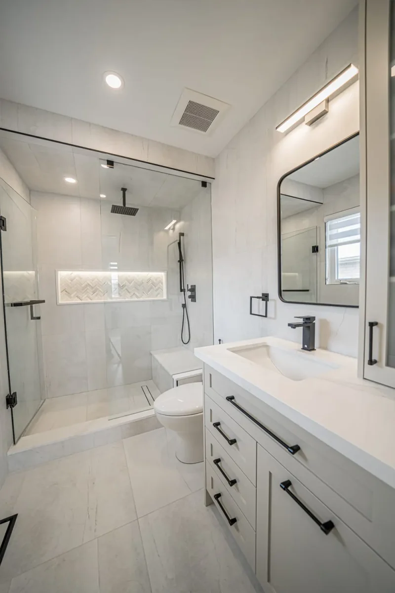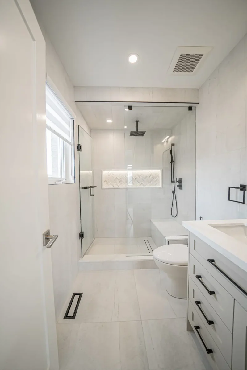 Conversion from single bathroom to two bathrooms and staircase.
