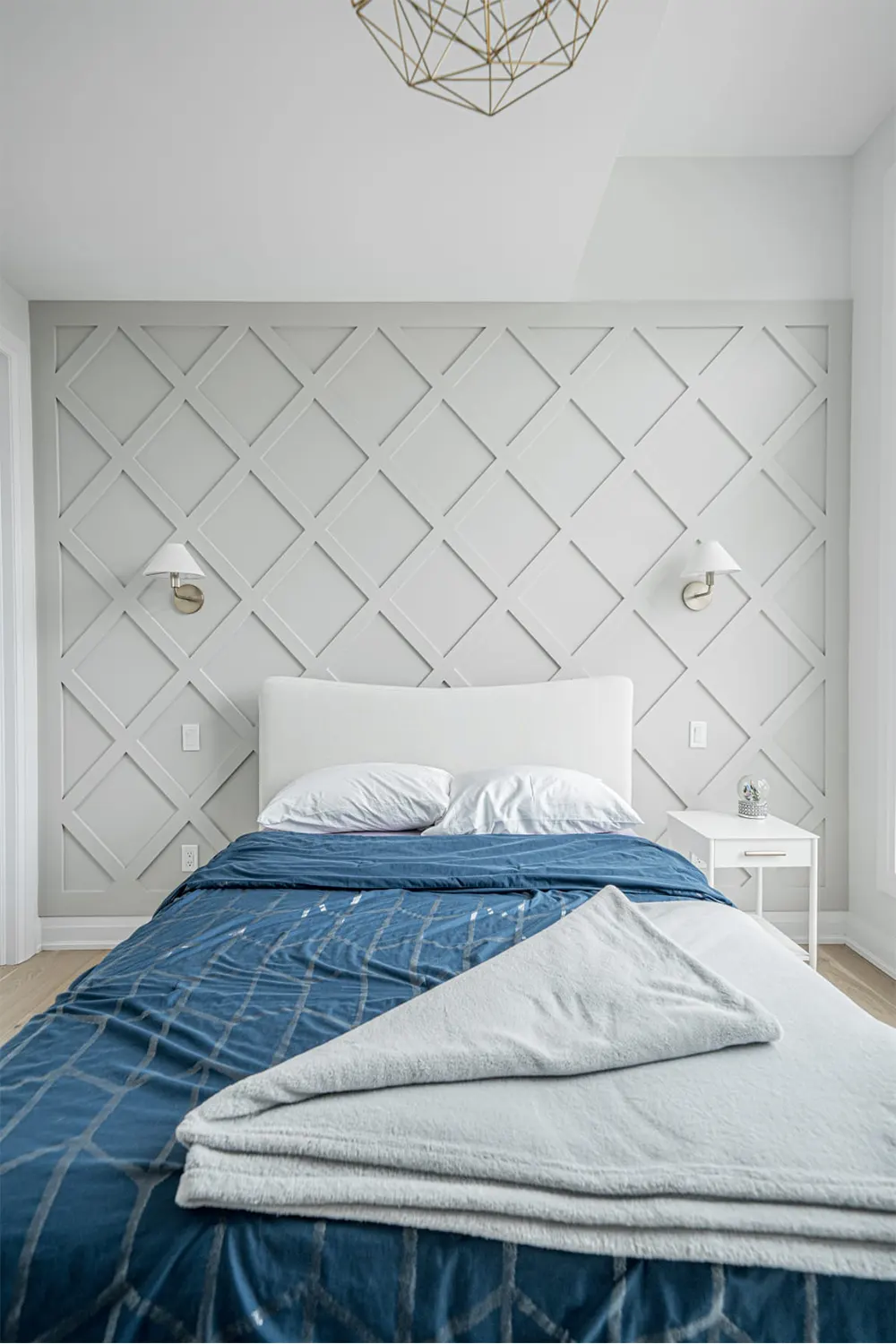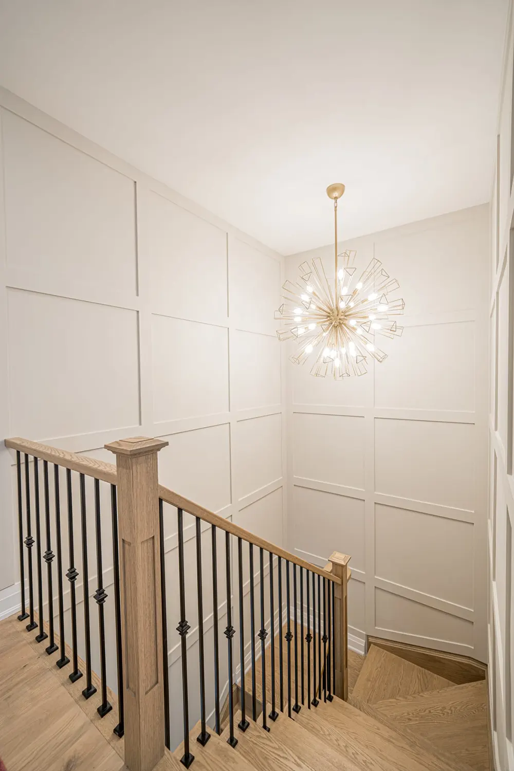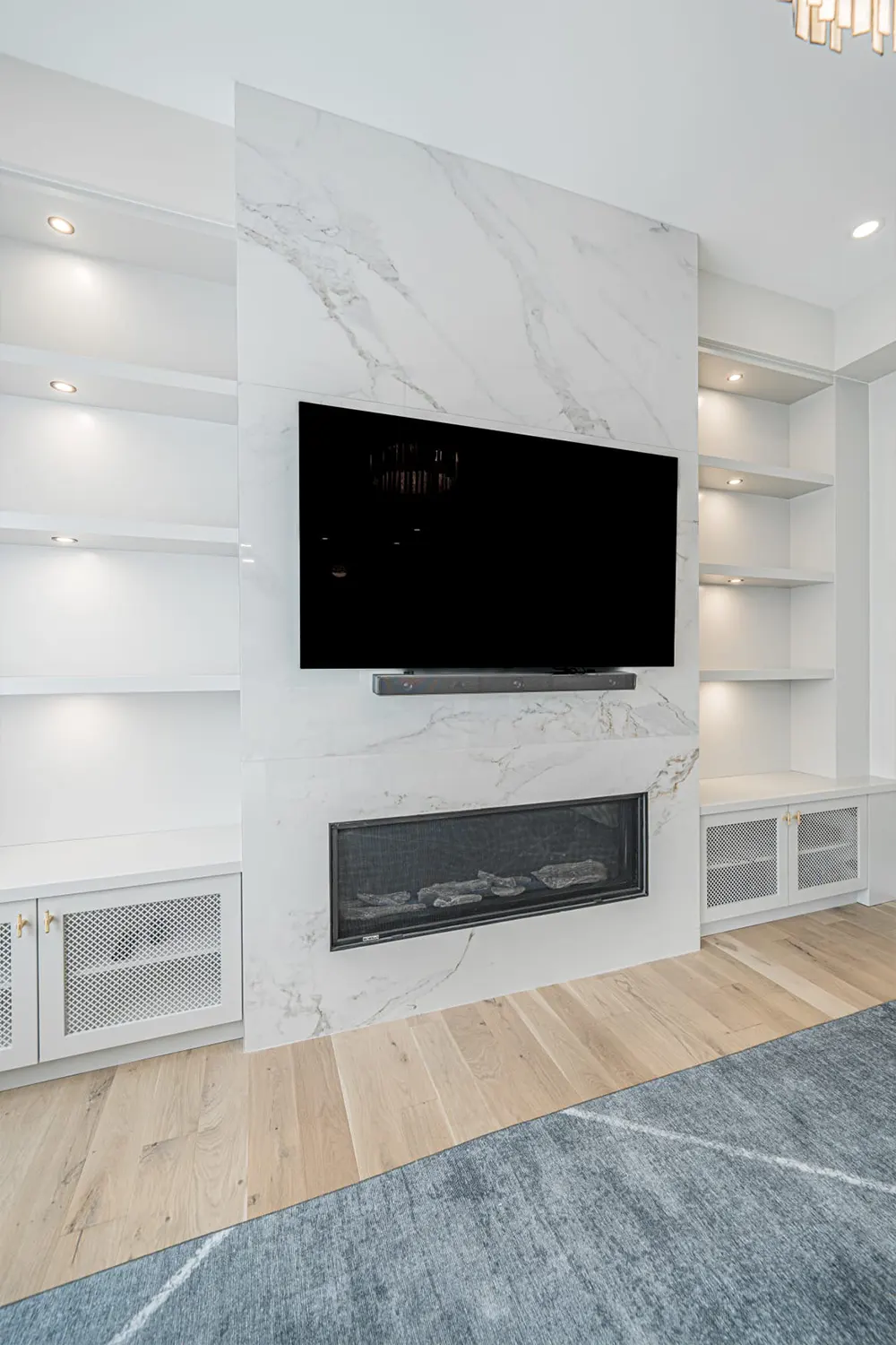 Cosmetic additions to bedrooms, plus new staircase, chandelier, fireplace and TV unit.